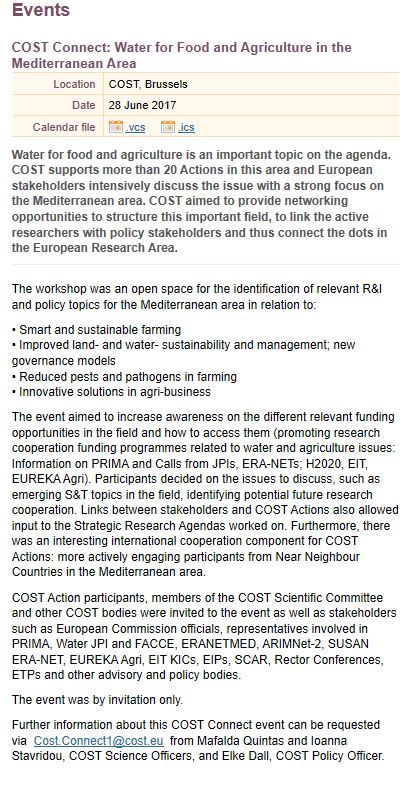28 June 2017 – Water for food and agriculture in the Mediterranean area (Brussels, Belgium)