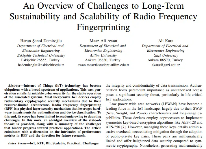 The Internet of Things (IoT) is transforming industries with its plethora of applications, from smart cities to healthcare. However, this rapid proliferation comes with a pressing need for additional cybersecurity needs to ensure stable and resilient operations. Resource-constrained IoT devices often rely on basic cryptographic mechanisms, allowing innovative solutions like Radio Frequency Fingerprinting (RFF) to thrive and enhance physical layer security. As part of European Union COST Action, this study dives into the current state-of-the-art in RFF, a technique that utilizes unique hardware characteristics for device authentication and classification. Key Takeaways: Challenges in Real-World Deployment: While RFF has shown promise in academic settings, its practical applications are limited by technological barriers. There is a burgeoning need to deliberate the potential CONOPS (concept of operation) and operational scenarios encountered in real world deployment. The research sheds light on critical performance metrics and the complexities of evaluating RFF systems. By addressing these challenges, the study lays a foundation for advancing RFF from theory and controlled environment to practical implementation, enabling its integration into secure IoT ecosystems. By connecting this work to the COST action, we aim to foster collaboration across Europe to develop cutting-edge security solutions for networks of the future.